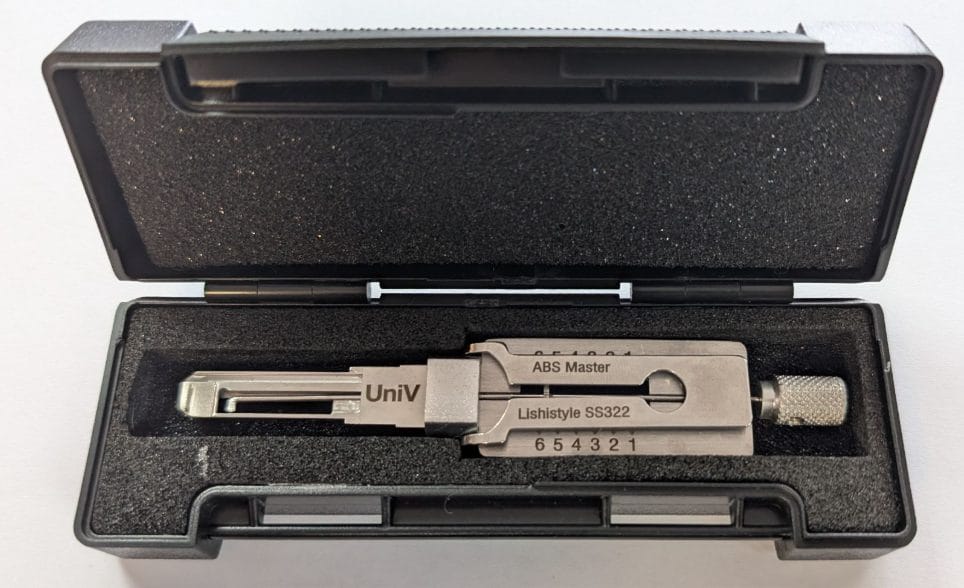 ABS Master 2-in-1 Lishi-style Dimple Cylinder Pick, which will open the newer ABS cylinders.