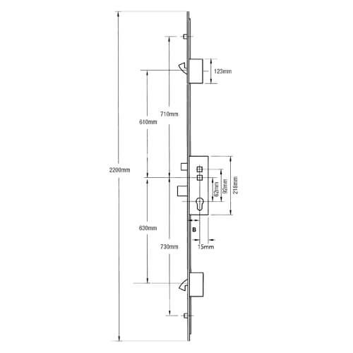 A durable and reliable door lock, the specialist Trivalent multipoint door lock with 2 hooks and 2 rollers has been designed to be used with both lever/pad and lever/lever operations. The 2 hook bolts and 2 roller cams bring together easy sealing with improved security. The centre latch can be reversed which means this lock can be altered to suit a variety of applications.