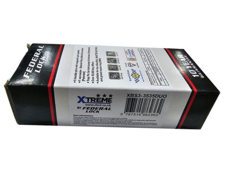 The Federal Extreme 3* cylinders are non-handed thanks to the anti-snap feature positioned on both sides, helping to reduce stock holding for locksmiths and prevent the cylinder been fitted the wrong way. In addition, all of the expected anti-bump, pick and drill security elements provide the ultimate in cylinder protection.