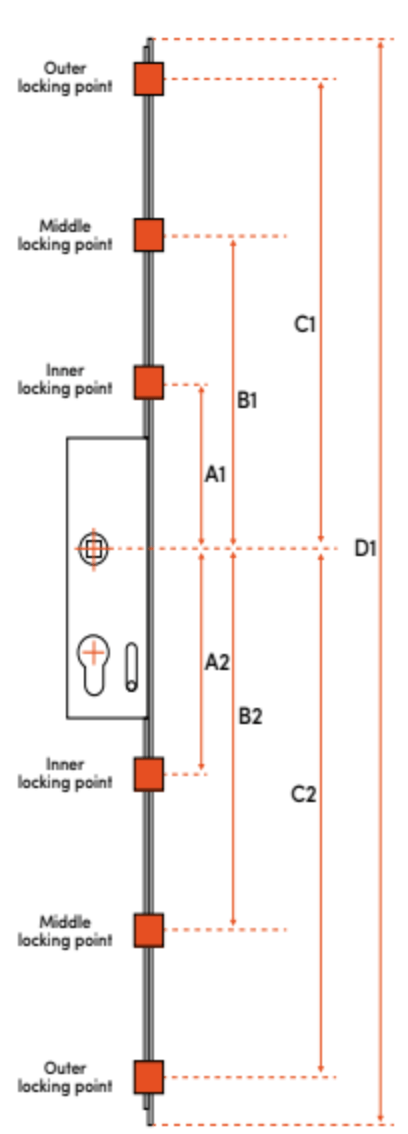 If your multipoint only has 1 set of locking points, please fill out boxes A1 and A2. If your multipoint has 2 sets of locking points, please fill out boxes A1,A2,B1 and B2. If your multipoint has 3 sets of locking points, please fill out boxes A1,A2,B1,B2, C1 and C2.