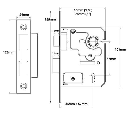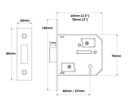 TSS 3 lever mortice locks. Supplied with 3 keys, keep and fixing screws.