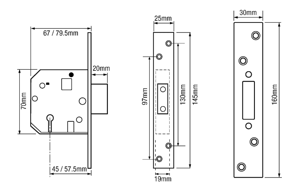 Supplied with 3 keys, a security box striking plate and escutcheons.