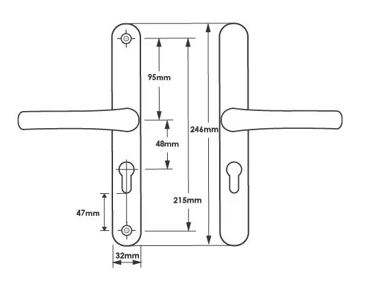 Sprung loaded door handle set that suits any 48mm centres (PZ)
