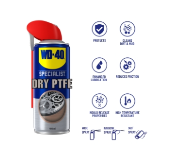 - PTFE (Polytetrafluoroethylene) enhanced dry formula – provides superior lubrication without oily residue
