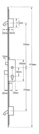 To unlock turn key to withdraw deadlock then either turn key again to withdraw latch and hook bolts or pull handle down to withdraw latch and hook bolts.