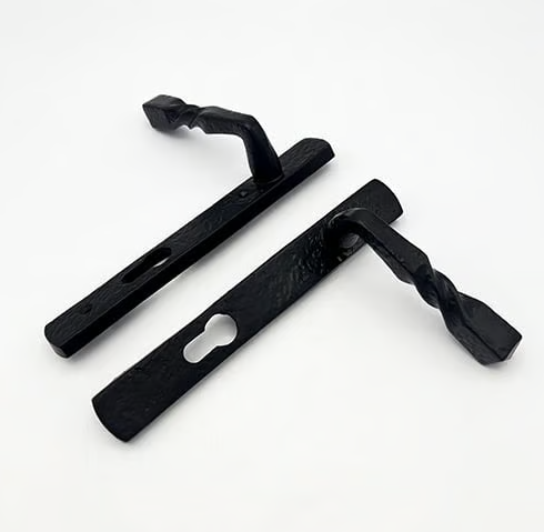 This handle has a backplate measuring 220mm and screw centres measuring 212mm and is compatible with most 92mm PZ multipoint locks.